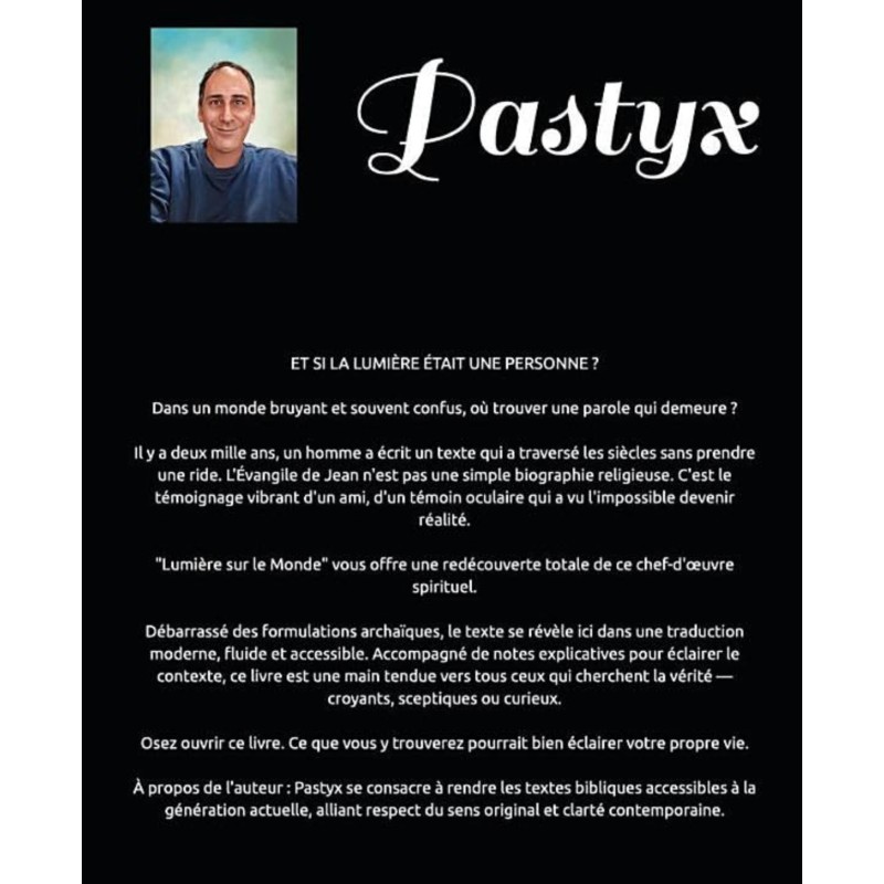 "Lumière sur le Monde" n'est pas une simple Bible de plus. C'est une porte ouverte. C'est l'Évangile de Jean, entièrement dépoussiéré, retraduit dans une langue fluide et contemporaine pour vous parler à vous, aujourd'hui.