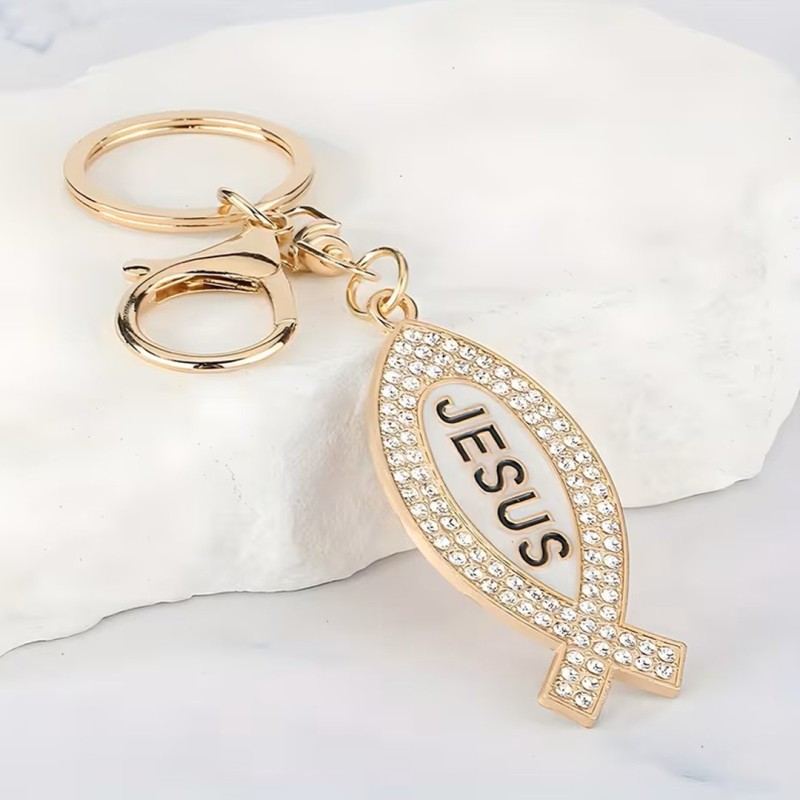 Porte-clés poisson Jésus doré